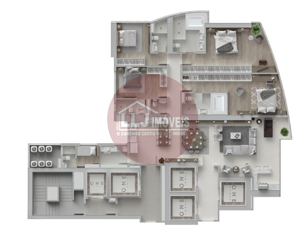 Planta Ampla e Exclusiva: Desfrute do máximo de espaço e conforto! Esta é uma das maiores e mais privilegiadas plantas do empreendimento, cuidadosamente projetada para oferecer ambientes sociais integrados e suítes master de dimensões generosas. São 216,59m2 privativos de puro requinte (podendo ser a planta diferenciada ou de final que oferece a metragem maior).