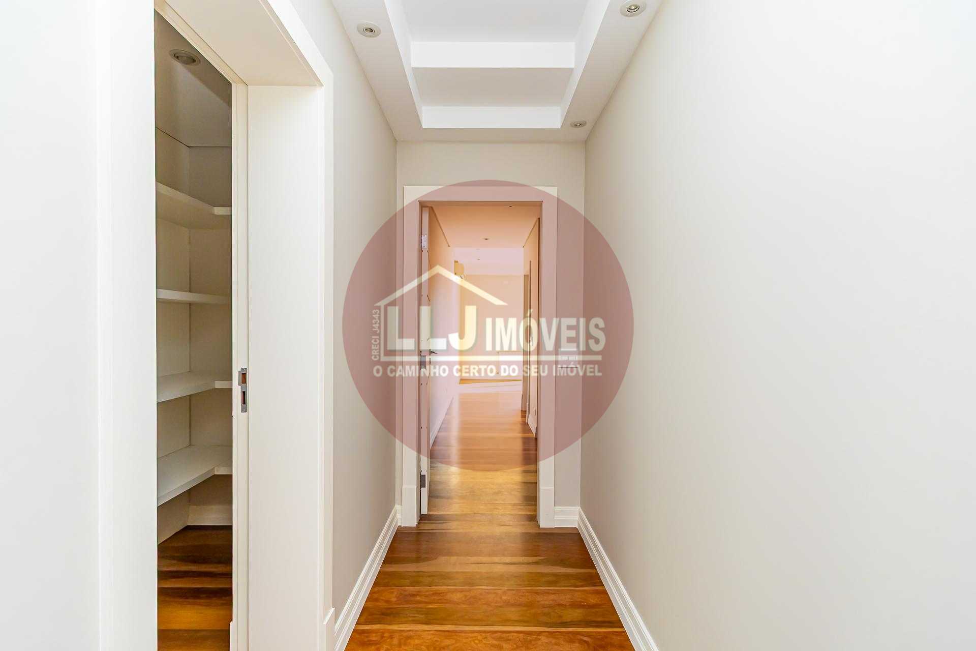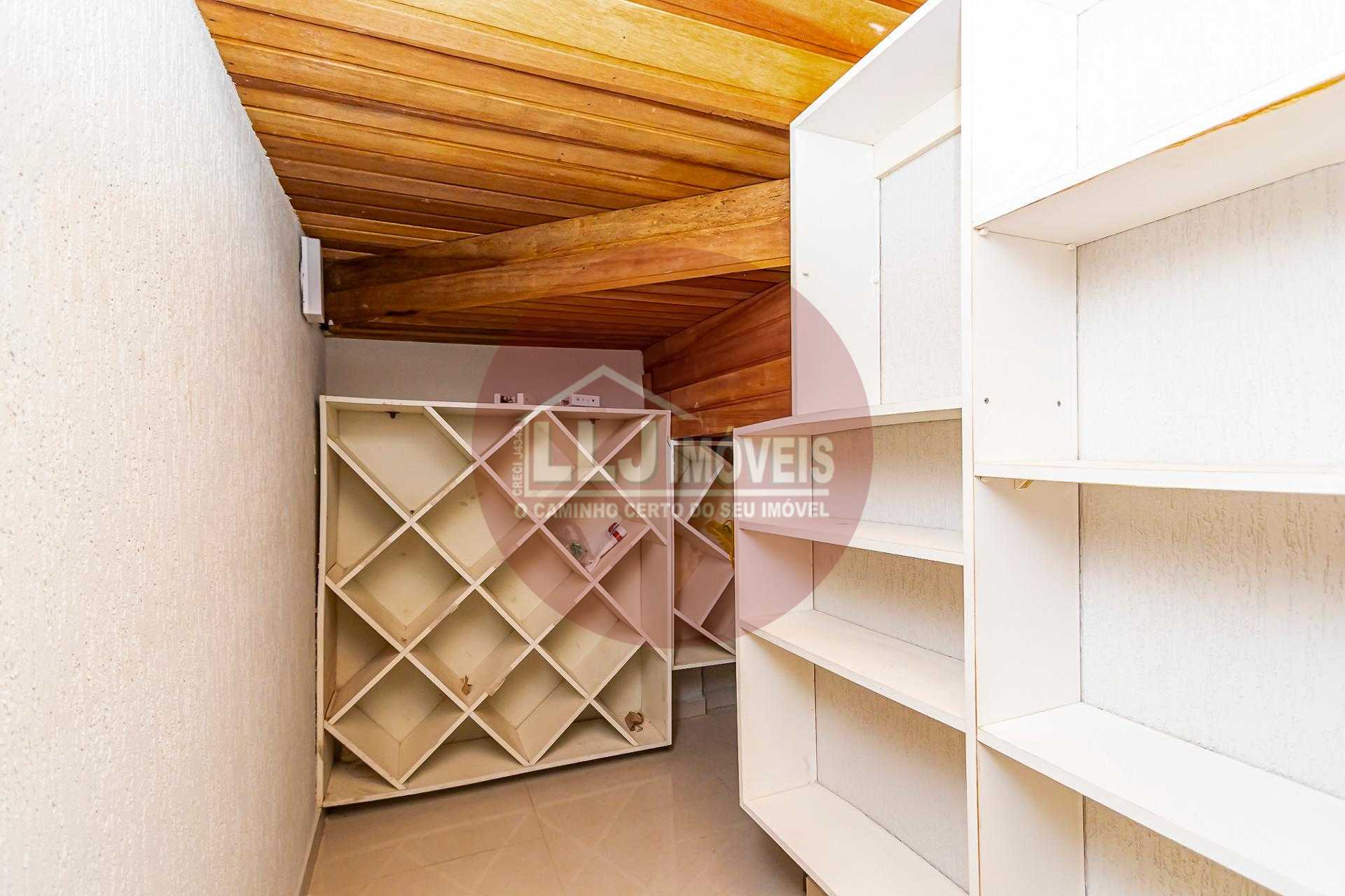 No pavimento inferior estão a garagem para quatro veículos, adega, despensa e dependência de serviço.