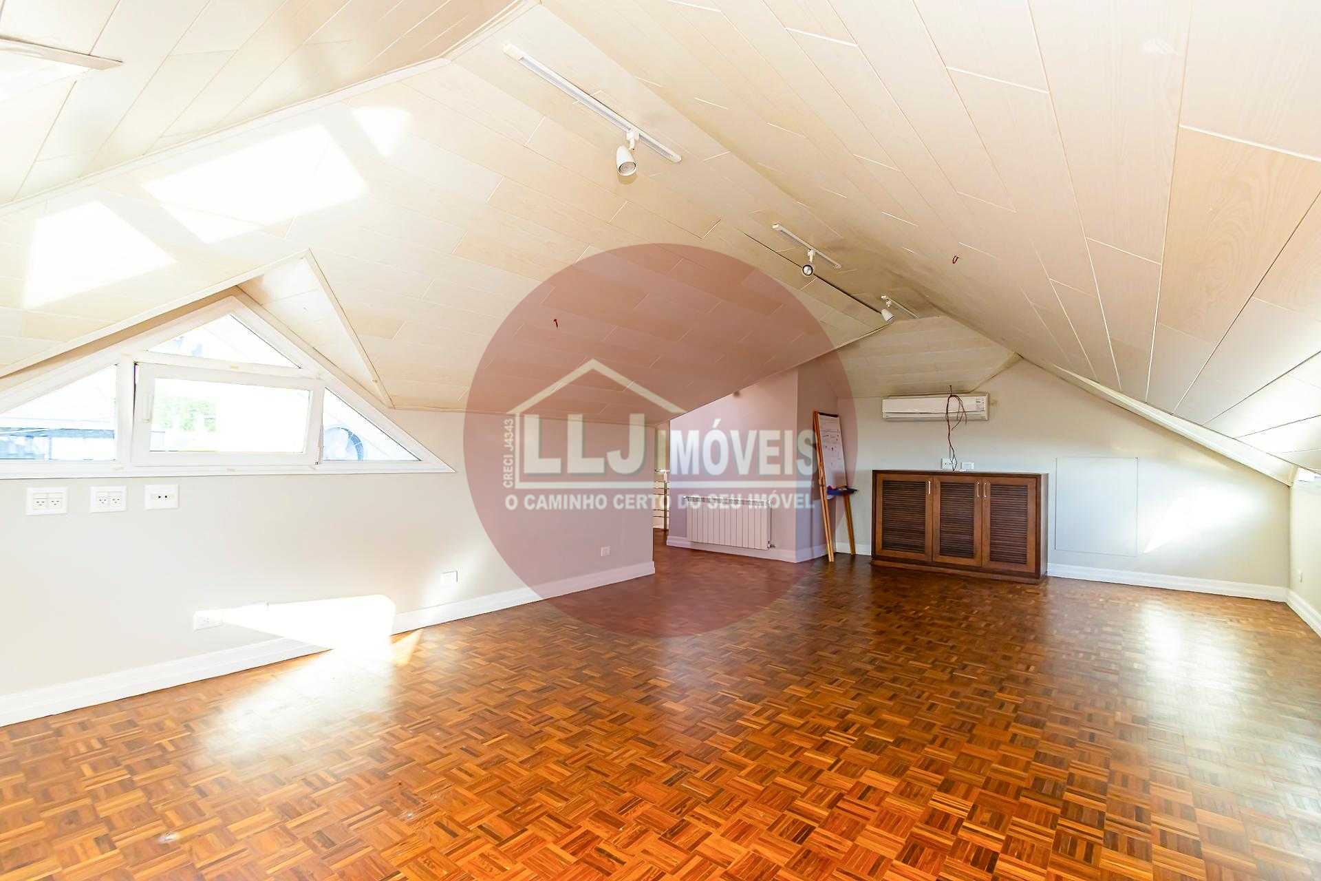 O ático oferece um espaço versátil que pode ser utilizado como escritório, sala íntima ou estúdio, além de contar com banheiro completo e área técnica.