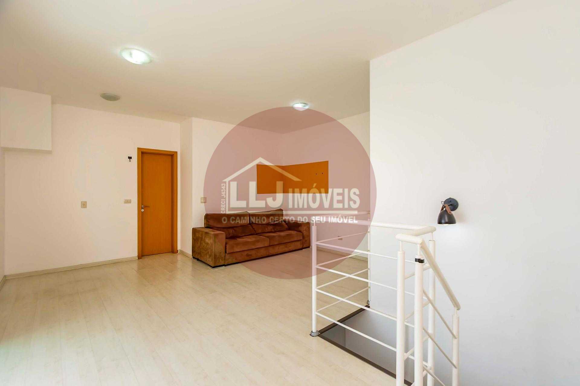 Duplex om 2 dormitórios, sendo a suíte (com amplo closet) no pavimento inferior, e o segundo quarto (que pode ser um Office) no pavimento superior.