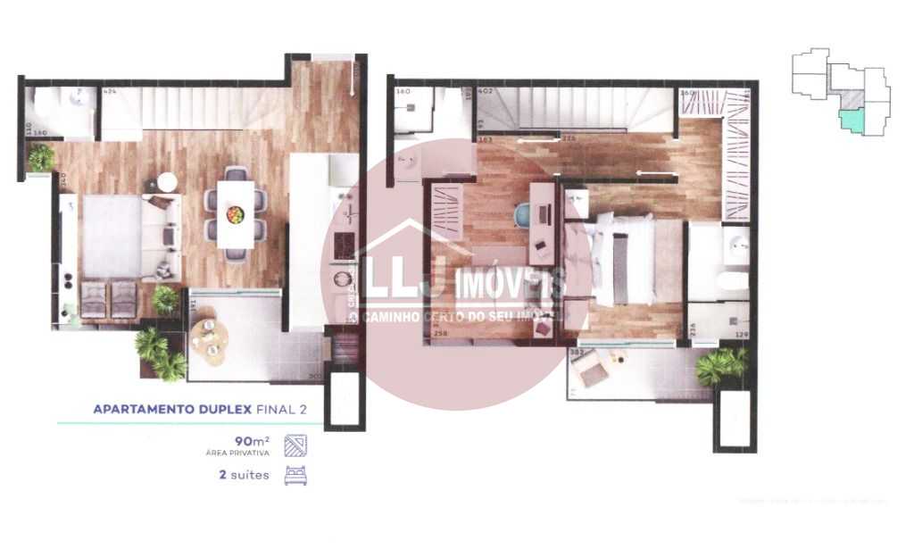 APARTAMENTOS DUPLEX COM 2 DORMITÓRIOS: