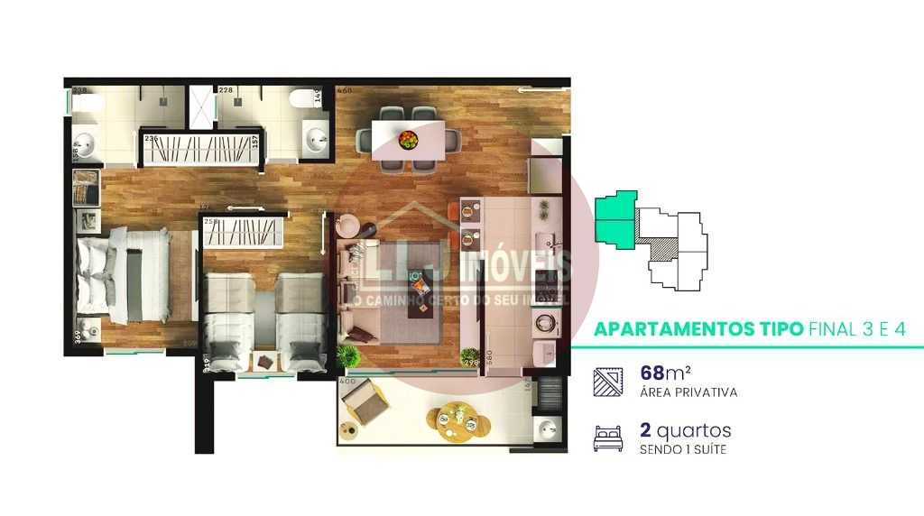 APARTAMENTOS TIPO COM 2 DORMITÓRIOS: