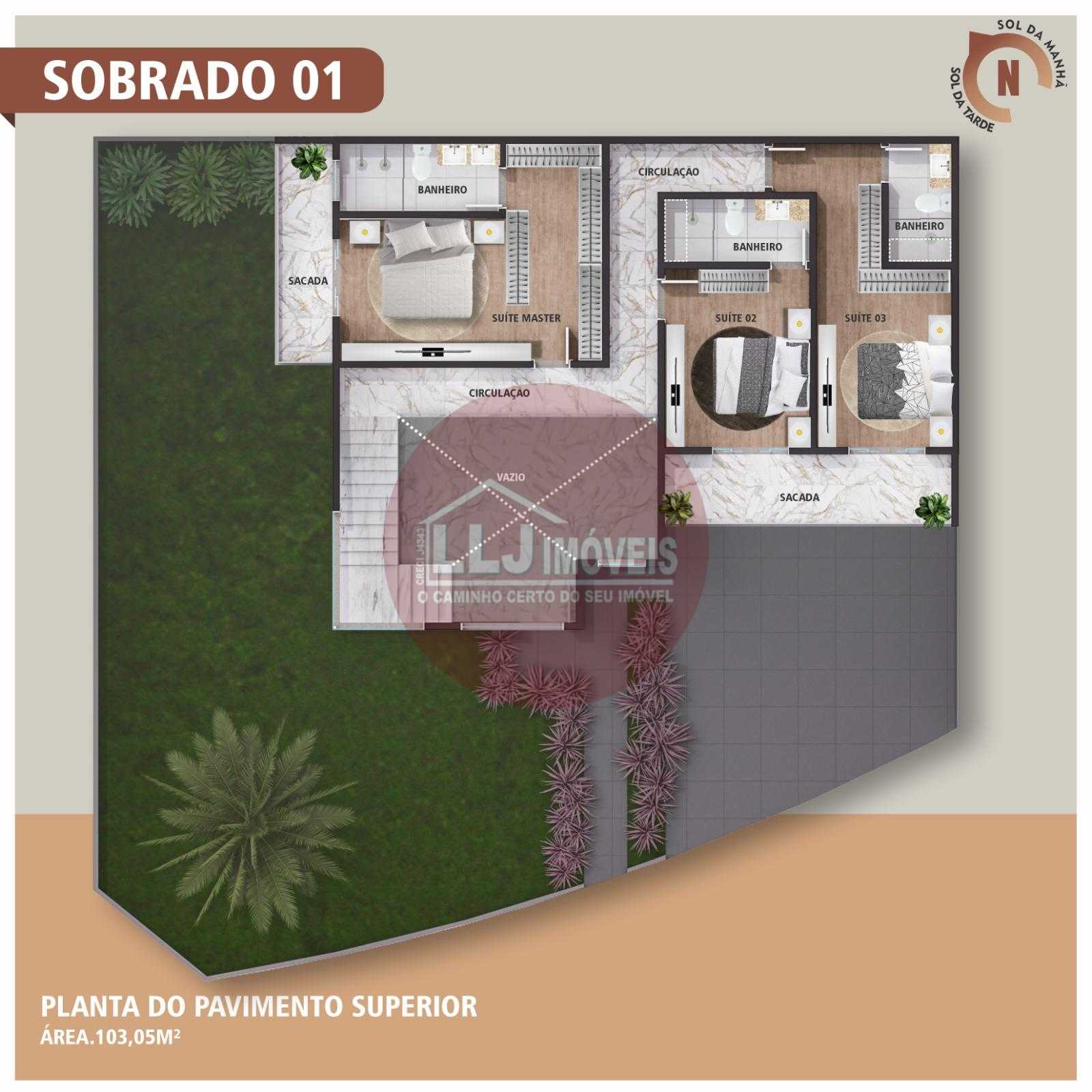 Piso Superior: Conforto e Privacidade 03 suítes amplas, todas com sacada Suíte master com closet Banheiro da suíte master com duchas duplas e lavatório duplo Espaços projetados para oferecer aconchego, funcionalidade e bem-estar.